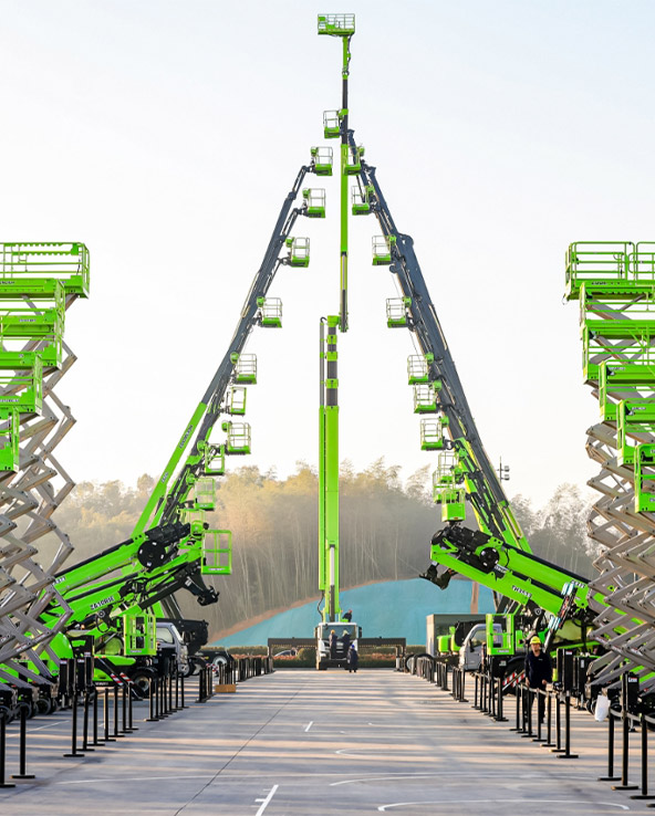 中聯(lián)重科智能高機(jī)目前有剪式、曲臂式、直臂式、伸縮臂叉裝車、車載式等七大類100余款產(chǎn)品,作業(yè)高度覆蓋6-95米,全面覆蓋市場上主流機(jī)型, 成為目前型譜最全的國產(chǎn)主機(jī)廠商,研發(fā)的產(chǎn)品在大高度、大承載力等方面達(dá)到國際領(lǐng)先水平;擁有全球作業(yè)高度最高的超高米段直臂產(chǎn)品。在行業(yè)內(nèi)首創(chuàng)全交流電驅(qū)鋰電剪叉,實(shí)現(xiàn)純電驅(qū)動(dòng)、零排放、低噪音、節(jié)能高效、超強(qiáng)續(xù)航,引領(lǐng)剪叉產(chǎn)品的發(fā)展趨勢。